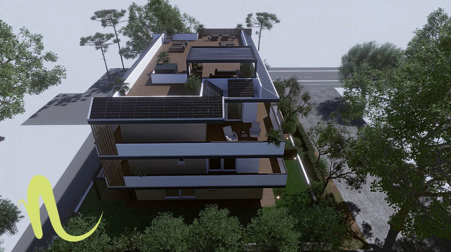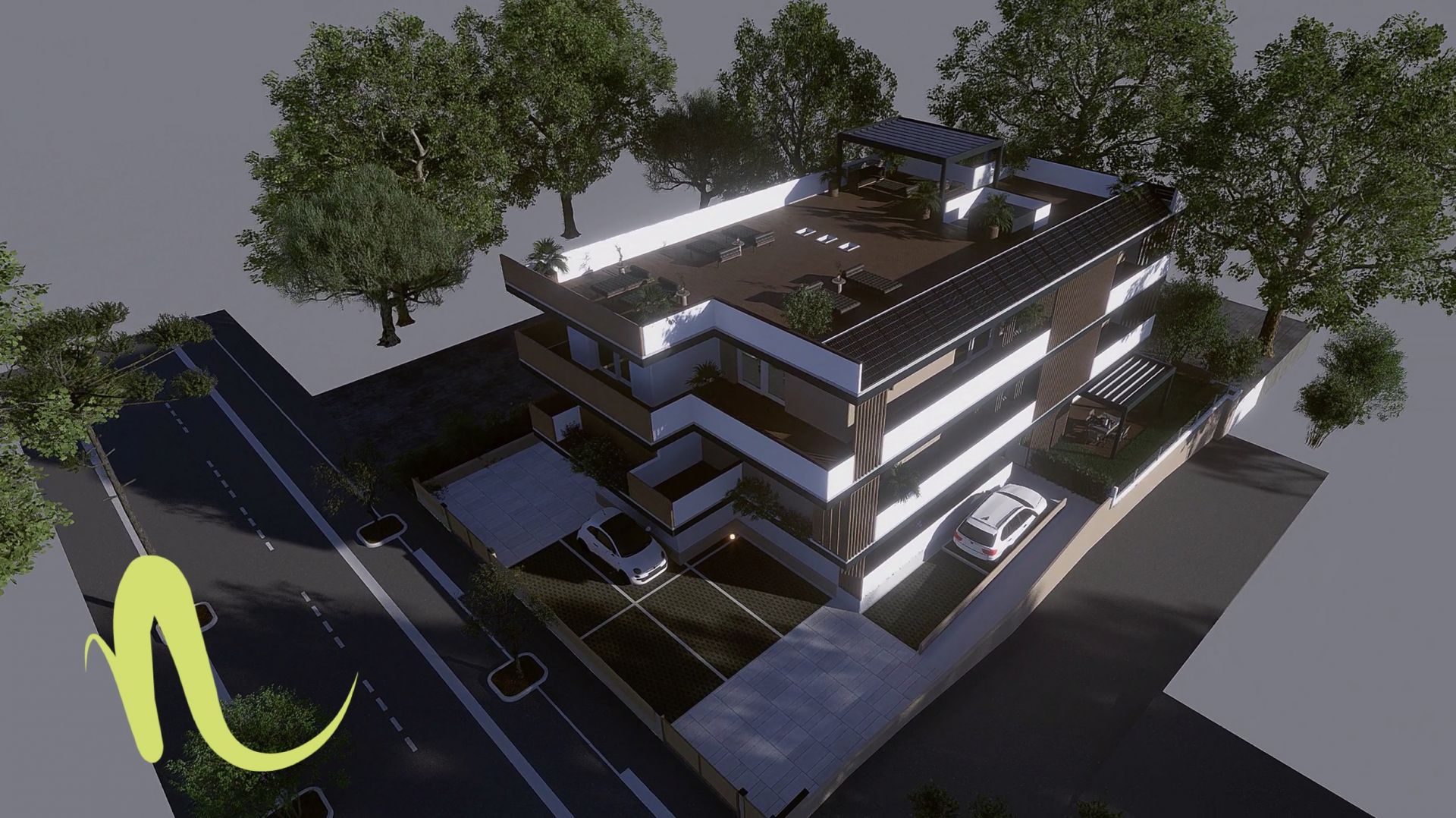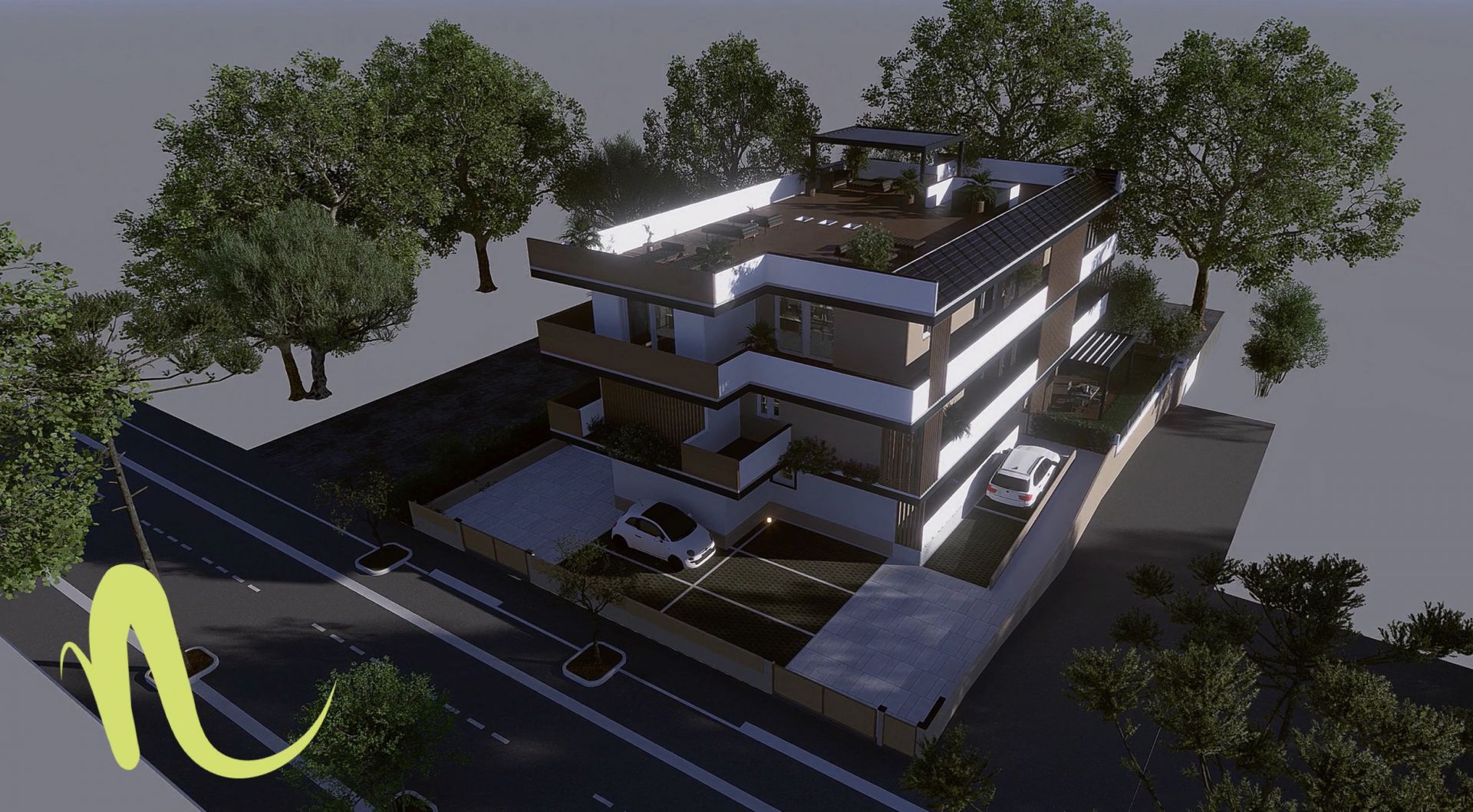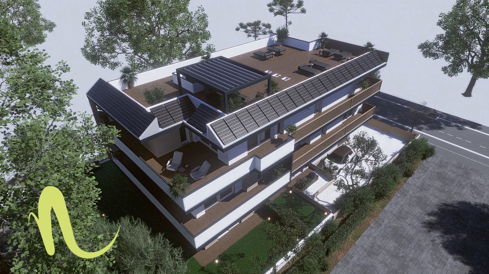Caratterizzato da grandi vetrate, frangisole di design, dettagli e finiture di pregio.